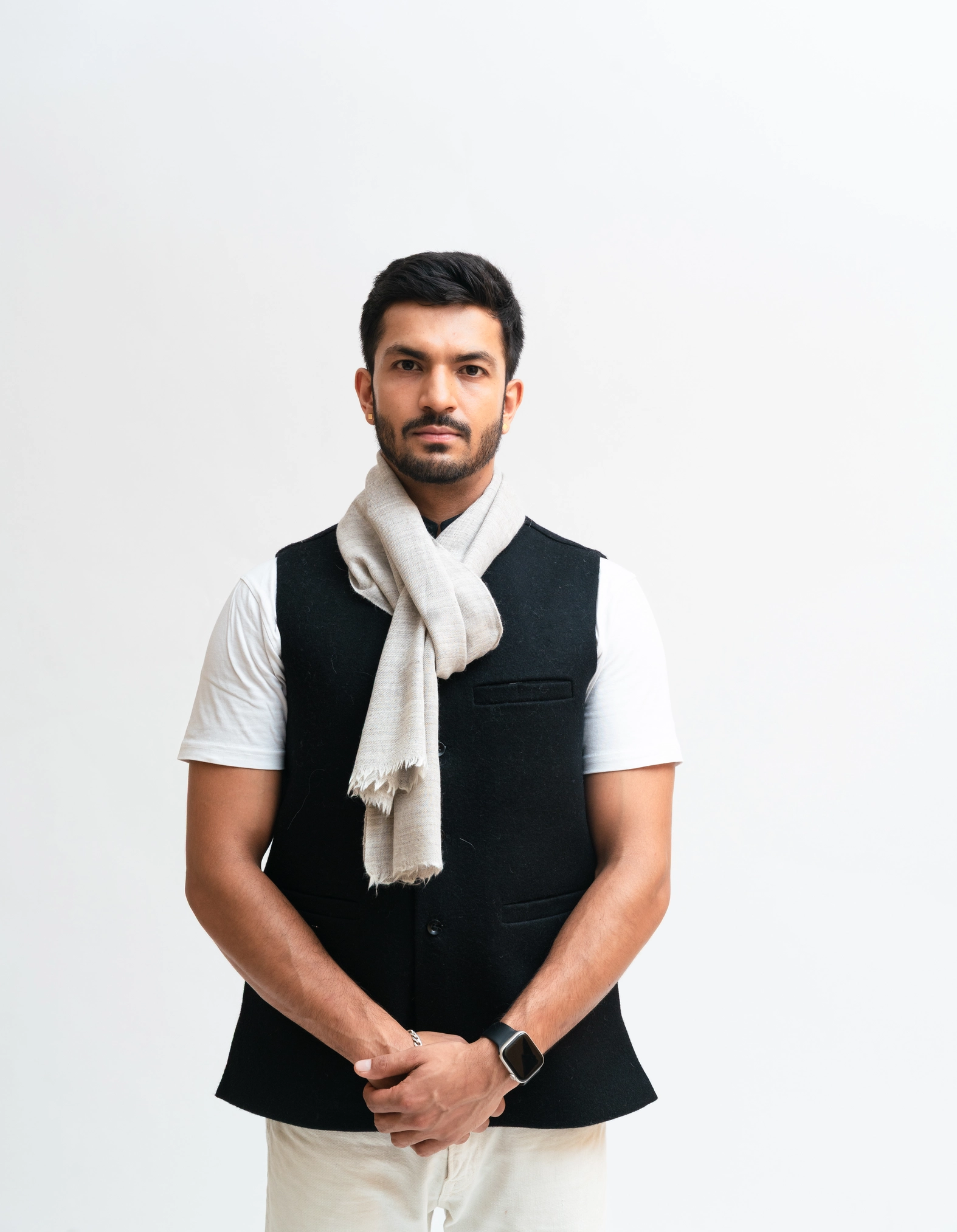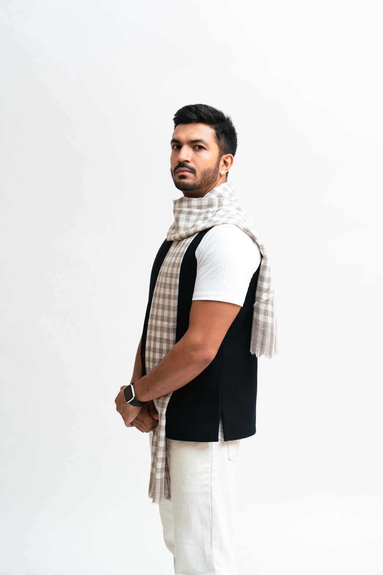 Angora wool muffler with check pattern.