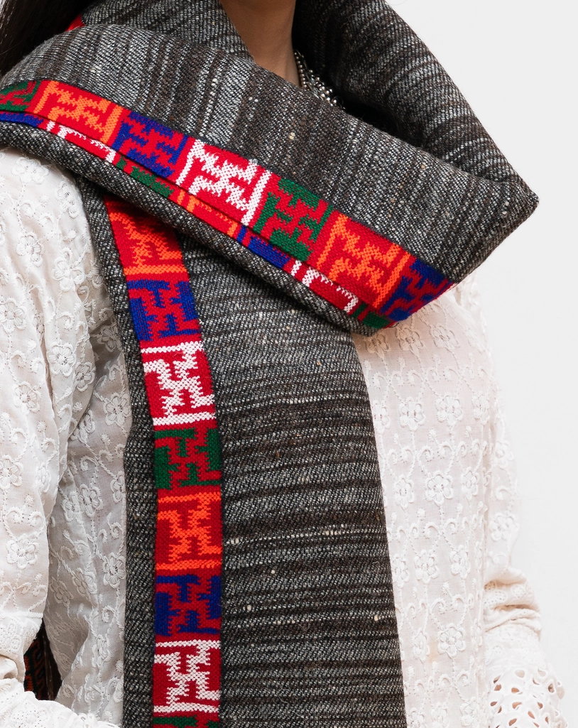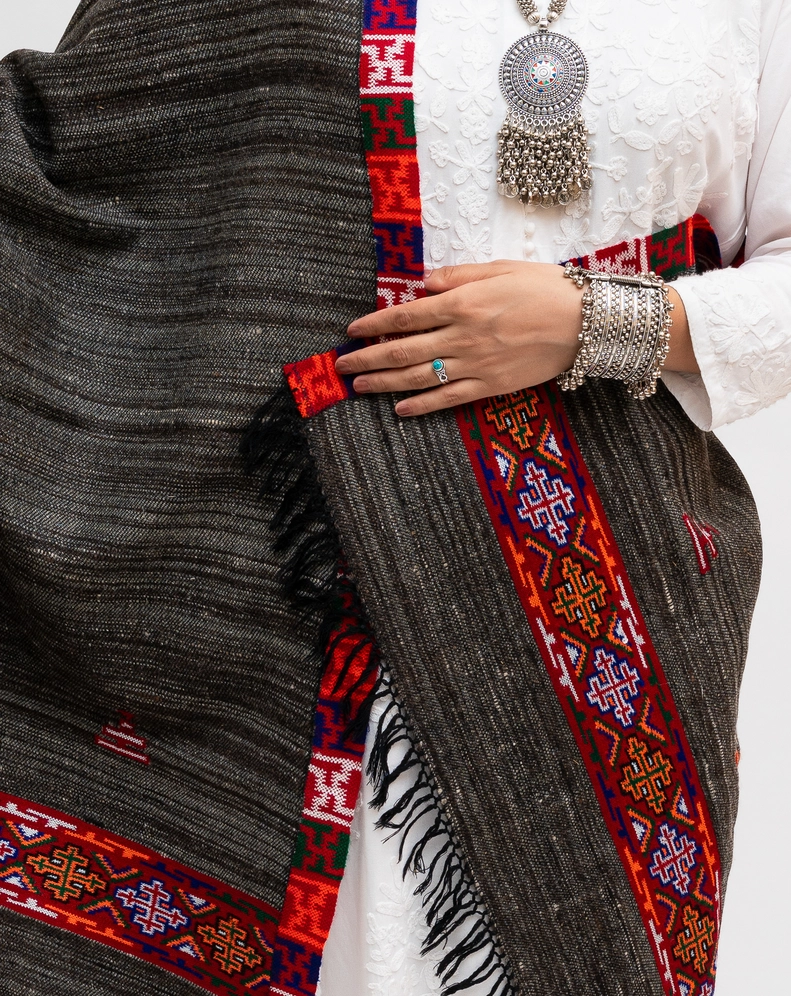 Traditional Kinauri style stole using authentic yakwool.